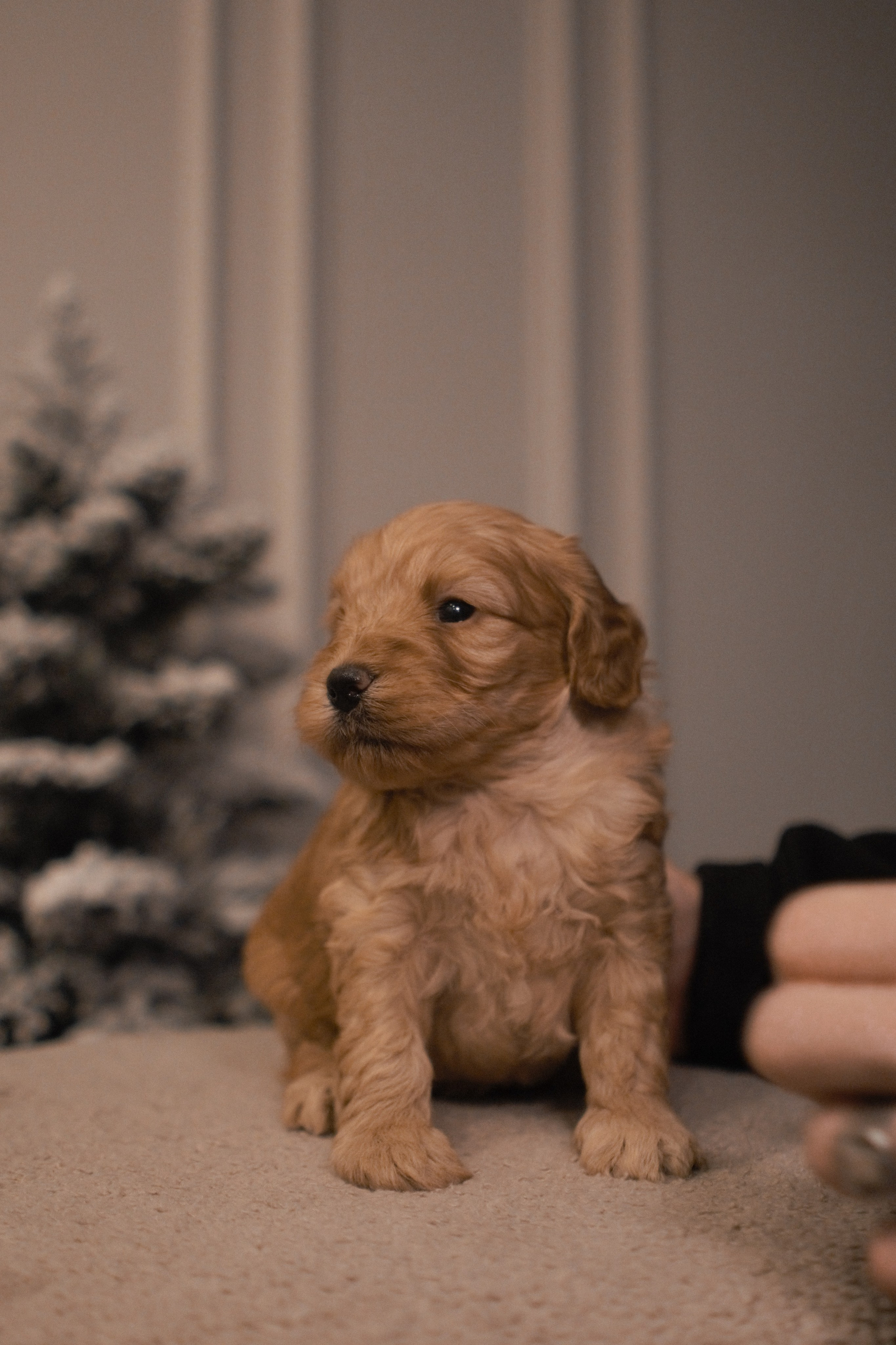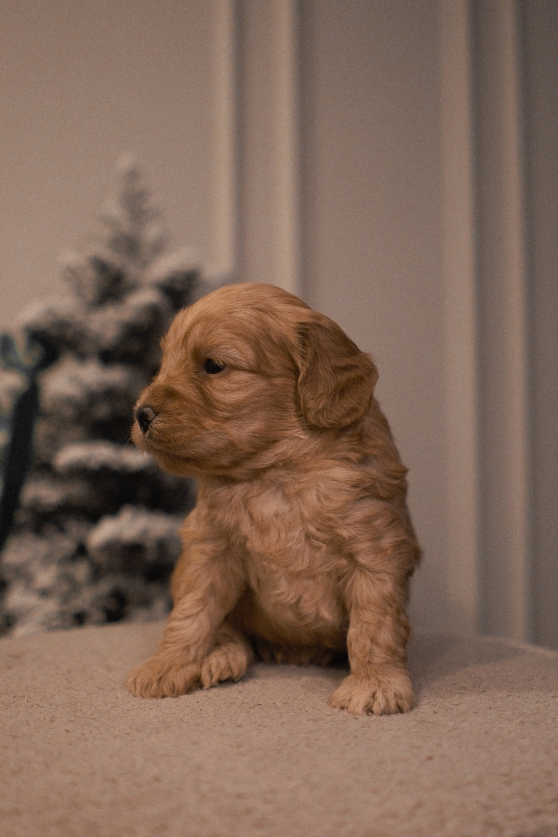 Эксклюзивная щенок-девочка, рождённая 7 декабря 2025 года. Обладает роскошной густой волнистой шерстью тёплого золотистого окраса, подчёркивающей её нежный и благородный облик.